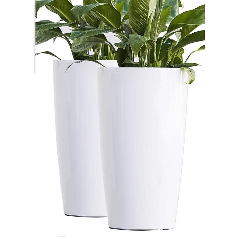 Xbrand Nested Plastic Self Watering Indoor Outdoor Round Tall Planter Pot W Glossy Finish Set Of 2 17 Inch Tall Walmart Com