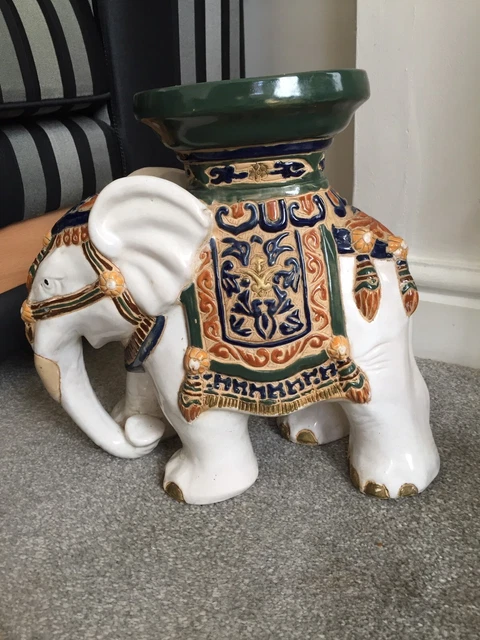 Vintage Small Ceramic Indian Asian Exotic Elephant Jardiniere Plant Pot Stand 20 00 Picclick Uk